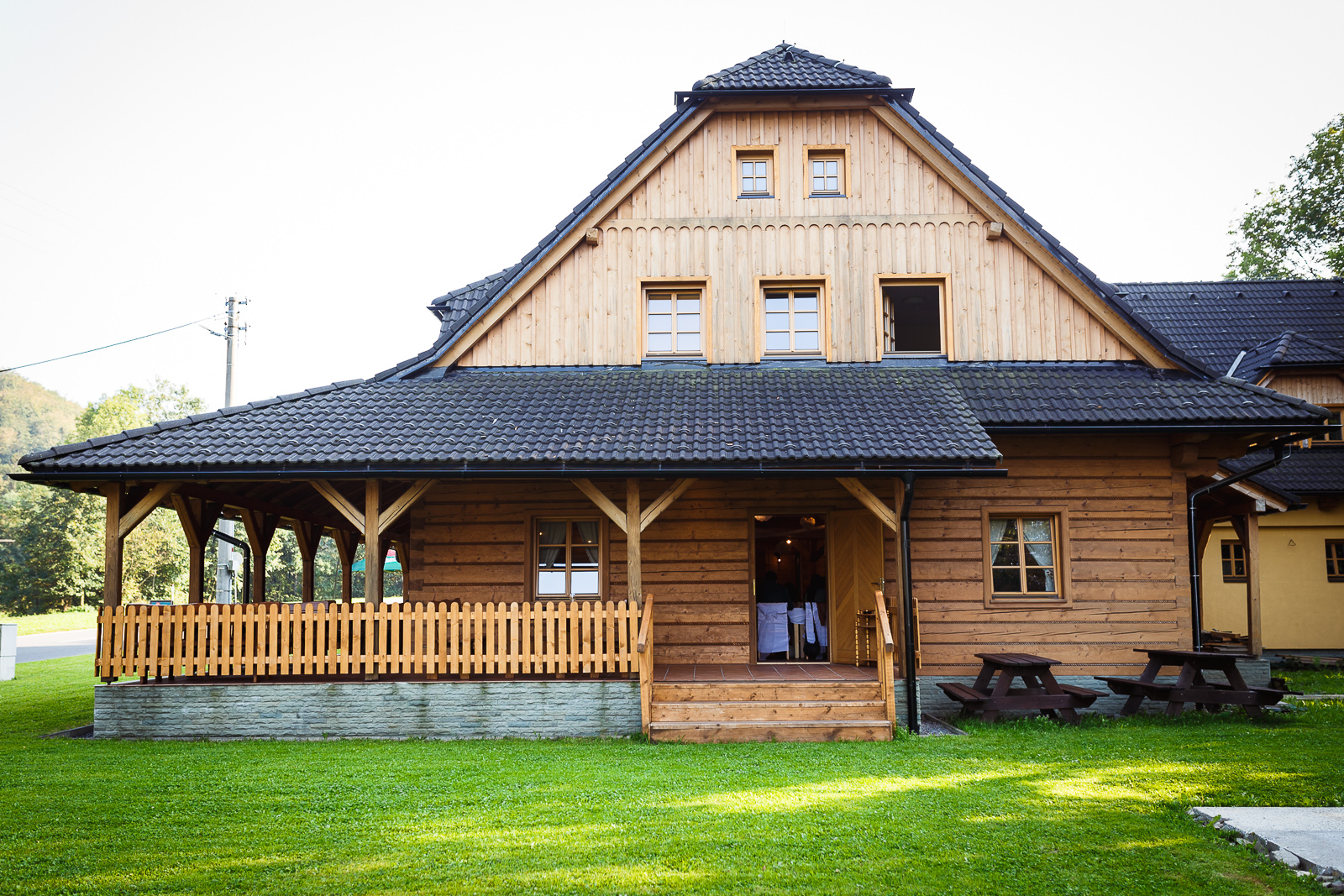 Vše pro svatbu na jednom místě. Pro obřady slouží veliká louka, která se nachází hned vedle roubenky. Restaurace je rozdělena na dvě části, kde jedna slouží pro raut a druhá, kde je sál, probíhá taneční zábava. Ubytování nabízíme v 9 moderních pokojích.